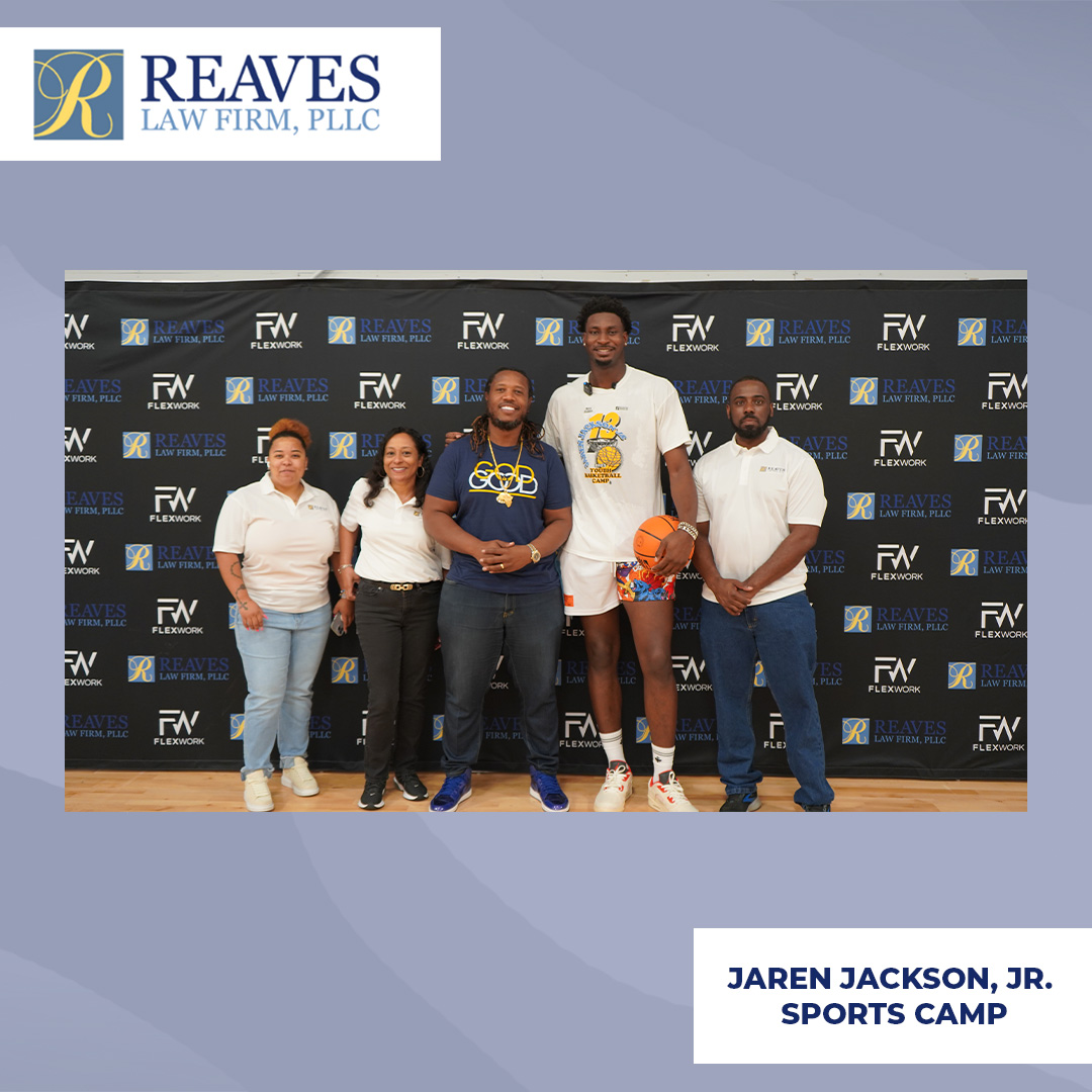 One of the things Reaves Law Firm Founder Henry Reaves, III is most passionate about is helping young people. In July 2023, Reaves Law Firm was the Presenting Sponsor for the Jaren Jackson, Jr. Sports Camp. Memphis Grizzlies star forward, Jaren Jackson, Jr. spent the day with a group of youngsters and even gave them one-on-one basketball tips.